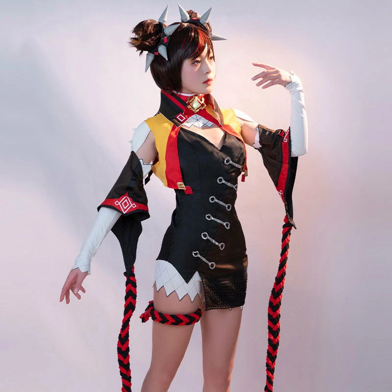Features: ThisΒ cosplay costumeΒ is based on the character XinyanΒ from Genshin Impact. It can be used in cosplay conventions andΒ HalloweenΒ parties.