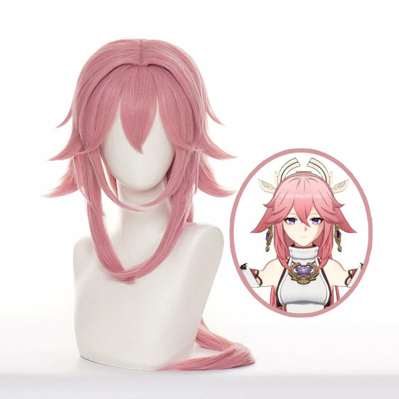 Game Genshin Impact Yae Miko Pink Halloween Cosplay Wigs